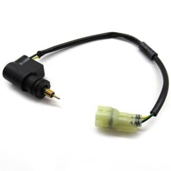 This image displays the Technical Precision 3304-470 replacement part. It is an electrical component, likely a sensor or switch, featuring a black cylindrical body with a metal pin at one end, connected to a black insulated wire. The wire terminates in a light yellow, multi-pin electrical connector. This component is designed for integration into the vehicle's electrical system.