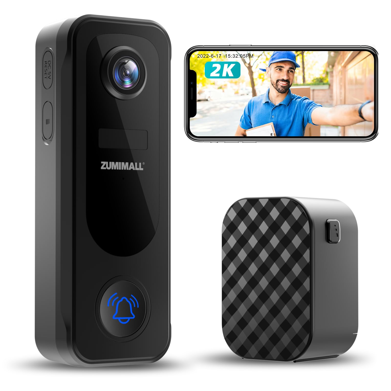Figure 1: ZUMIMALL P8 2K Wireless Video Doorbell Camera and Chime.